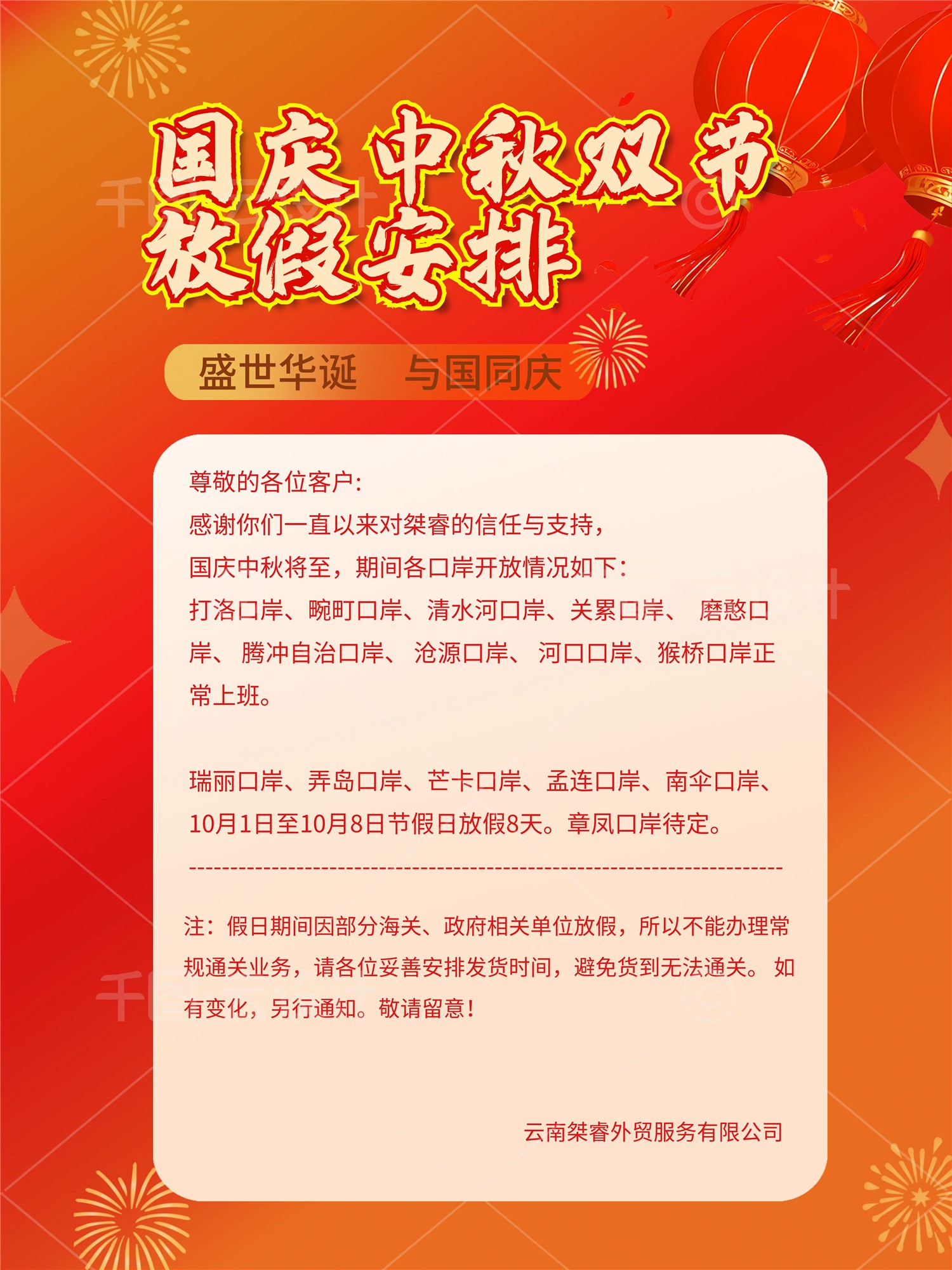 【公司动态】2025年国庆节放假公告